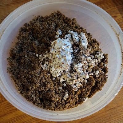 - Erstes Pilzsubstrat (aus Pellets)